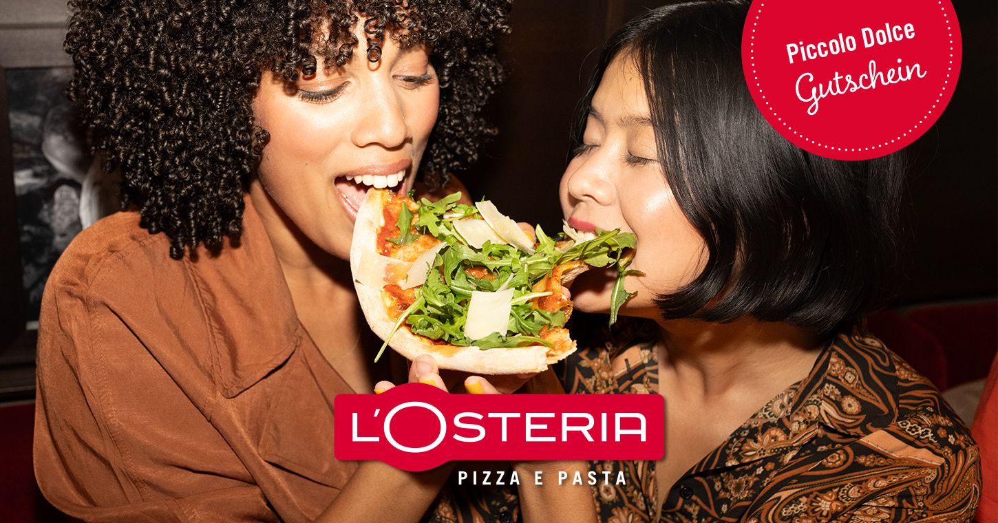 Bitte beachte, dass der Gutschein nur in Verbindung mit einem Hauptgericht eingelöst werden kann. Gültig in allen L’Osteria Restaurants in Österreich bis zum 31.08.2026. Pro Person kann ein Gutschein eingelöst werden.